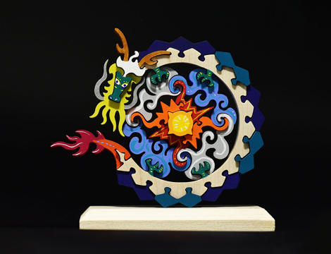 龍が回転しながら太陽に向かって