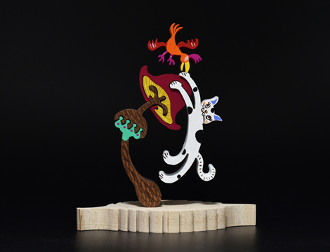 Title: 水玉ねこ オレンジ鳥 キノコ