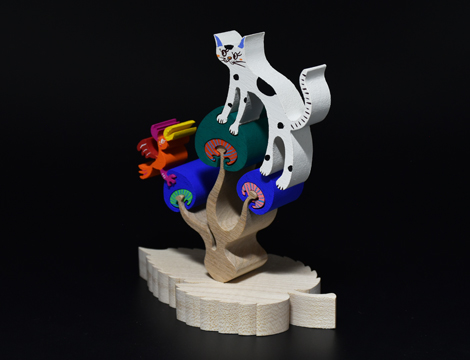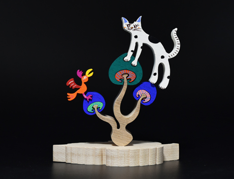 Title: 水玉ねこ オレンジ鳥 キノコ