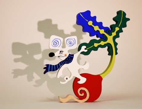 巻いて元気に走り回る白ネズミ。
