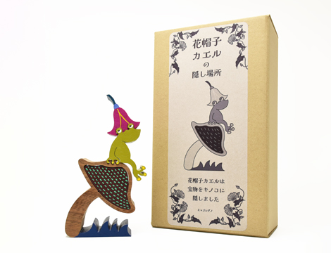 カエルは宝物をキノコに隠しました。