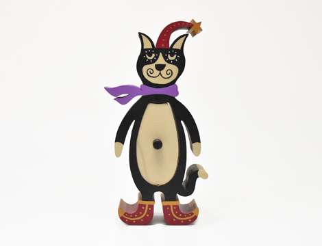 黒猫のドロワは赤い三角帽子と靴を履