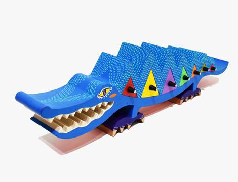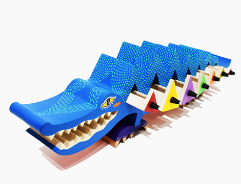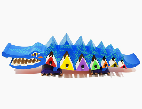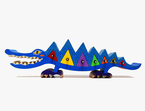 大きなワニの体にカラフルな三角形の